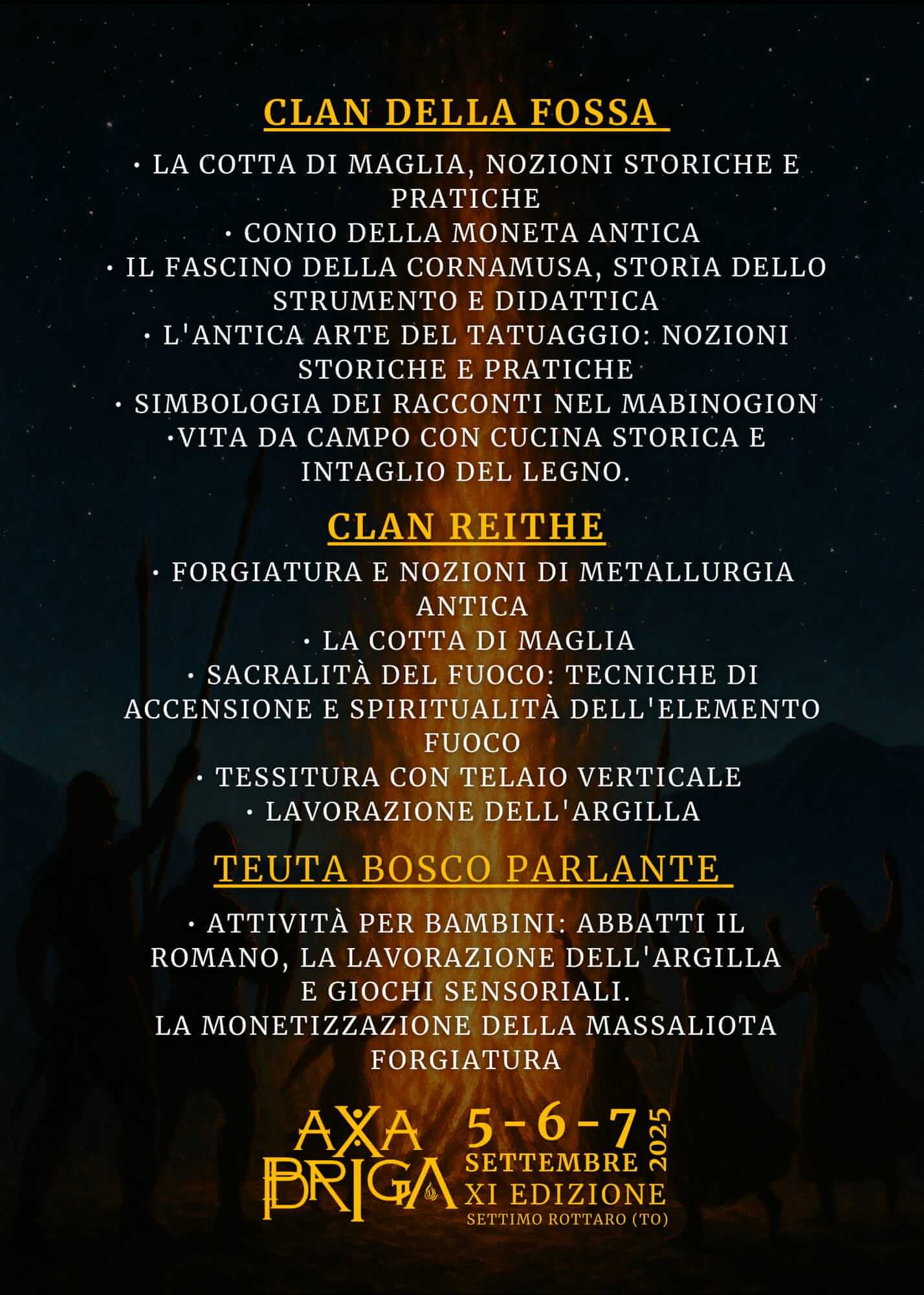 La rievocazione storica, l'archeologia sperimentale e la passione per la storia sono alla base dell'attività del parco, che propone differenti attività rivolte a scuole, centri estivi, visitatori e associati.